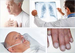 - دشواری در تنفس (تنگی نفس) یا تنگی نفس شدید که با فعالیت یا هنگام دراز کشیدن بدتر میشود.